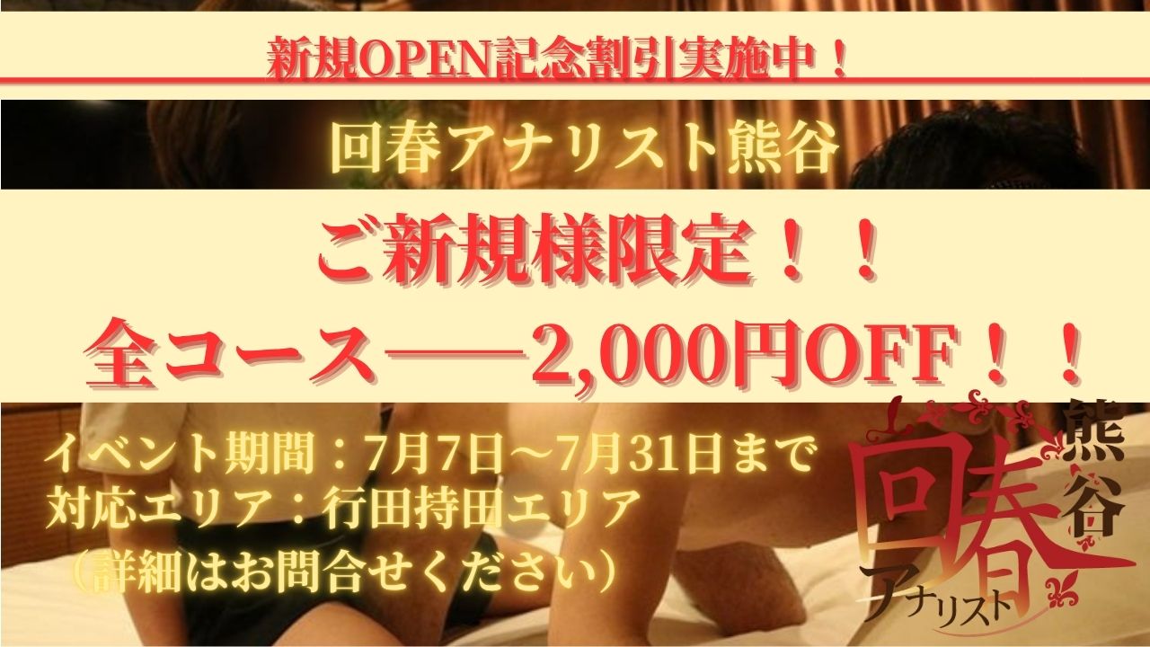 このたび、熊谷エリアに【回春アナリスト熊谷】が新規オープンいたしました!